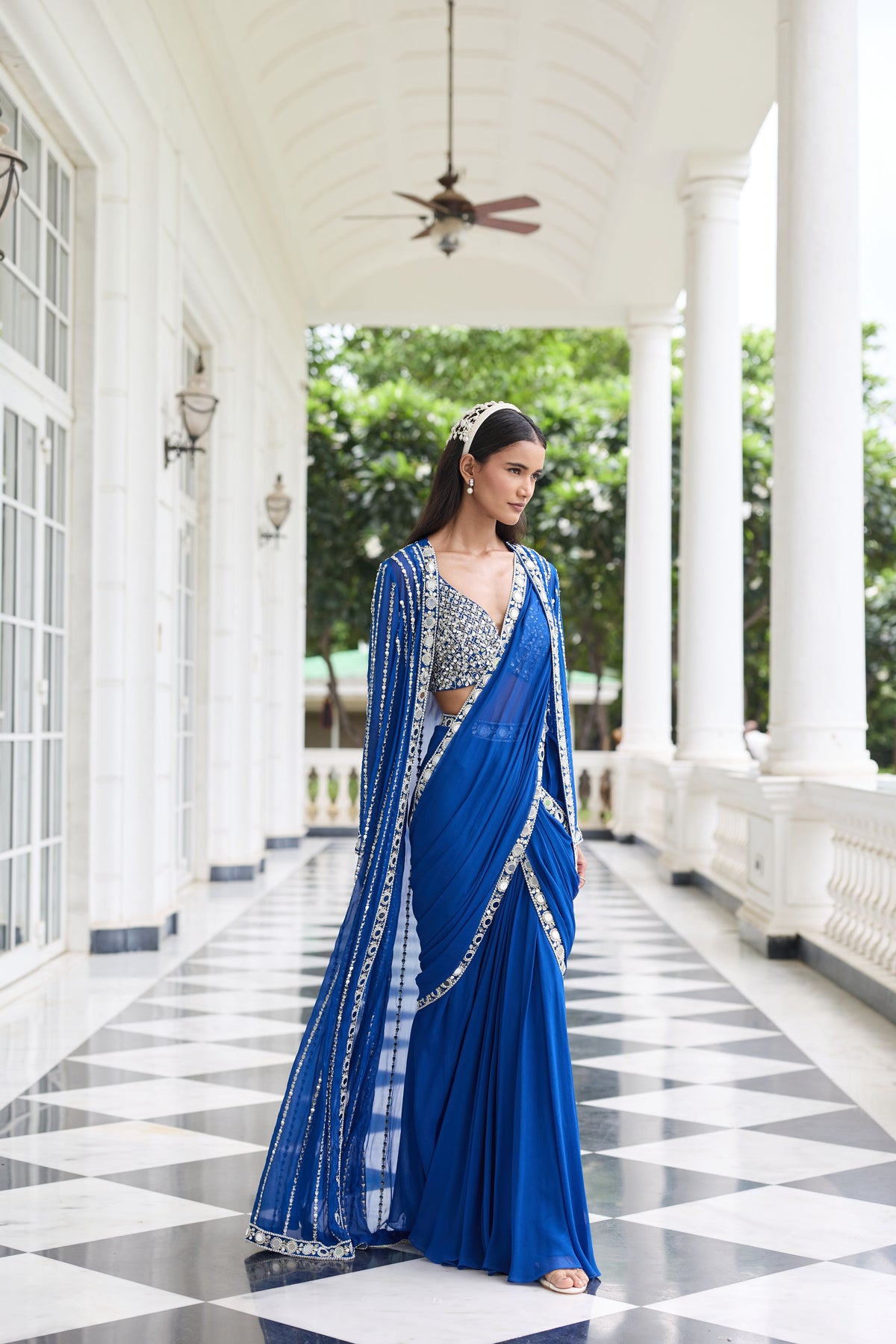 Embellished Choli Paired With Embellished Pre Draped Saree And Jacket
