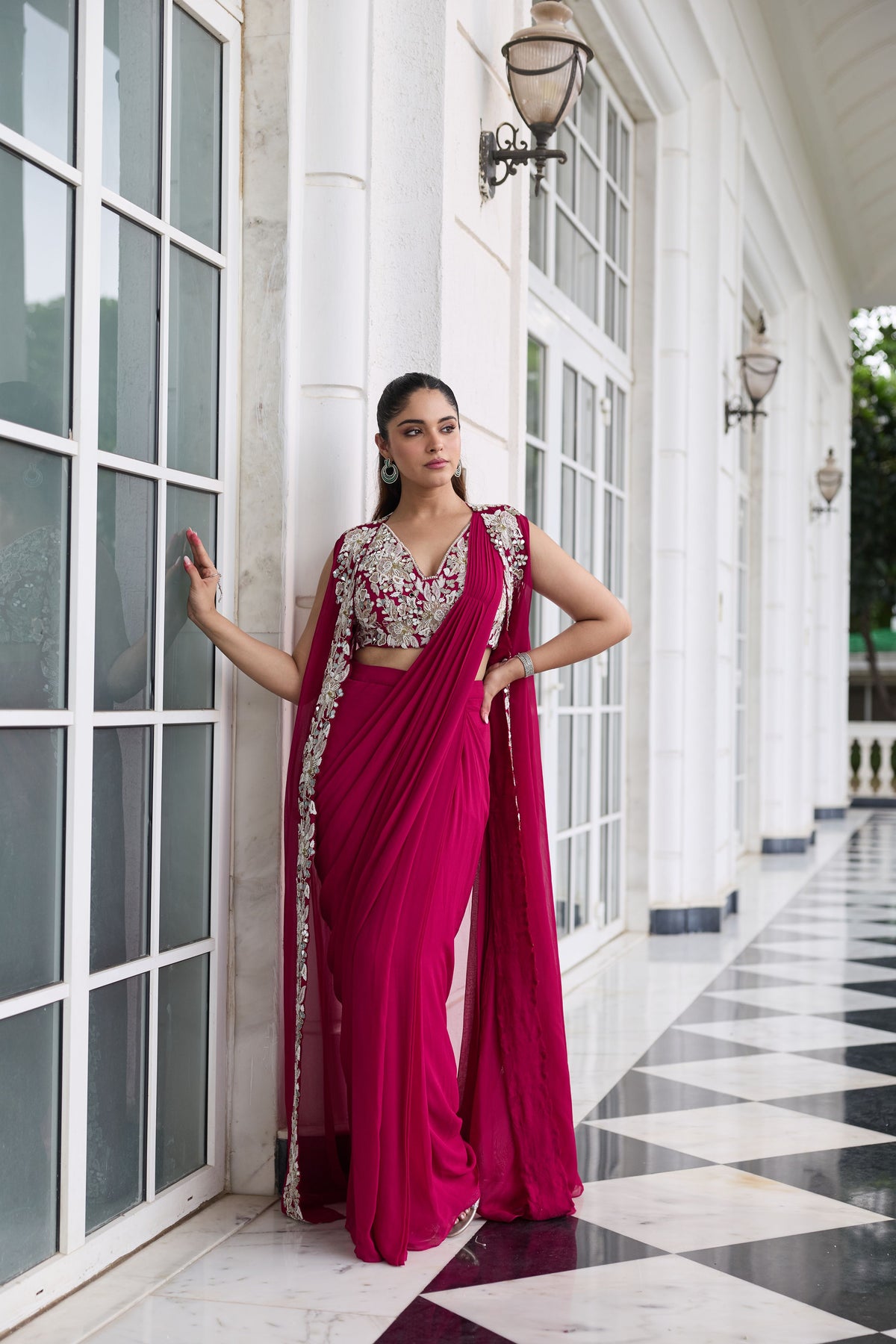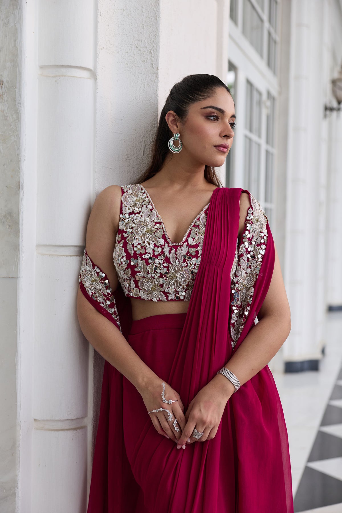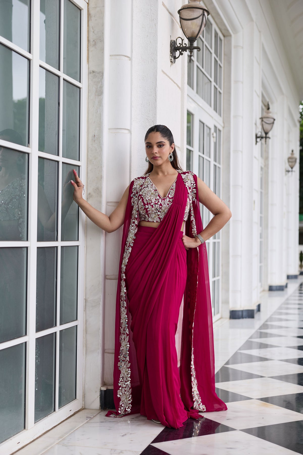 Embellished Choli Paired With Prewrapped Saree And Embellished Jacket