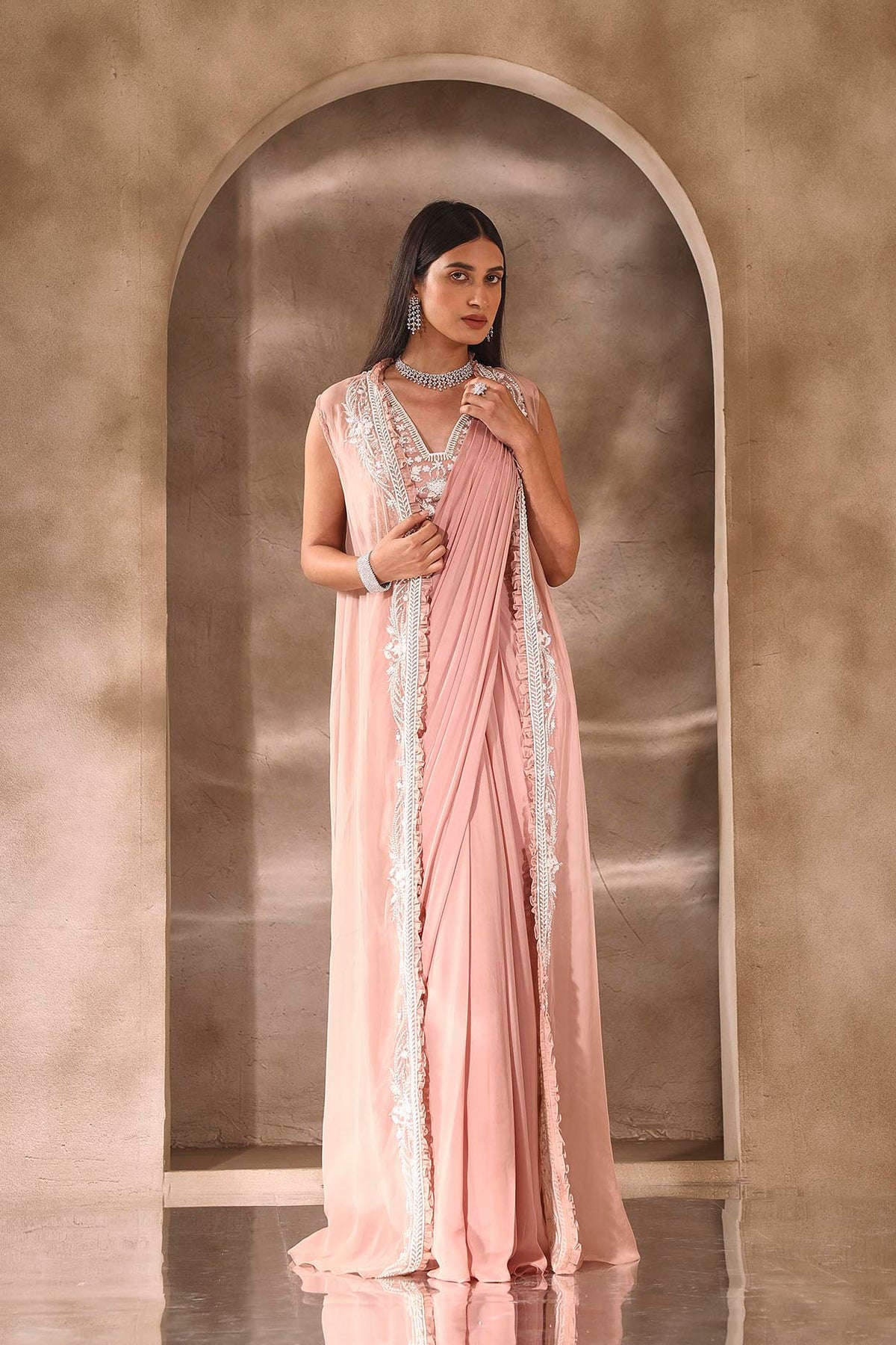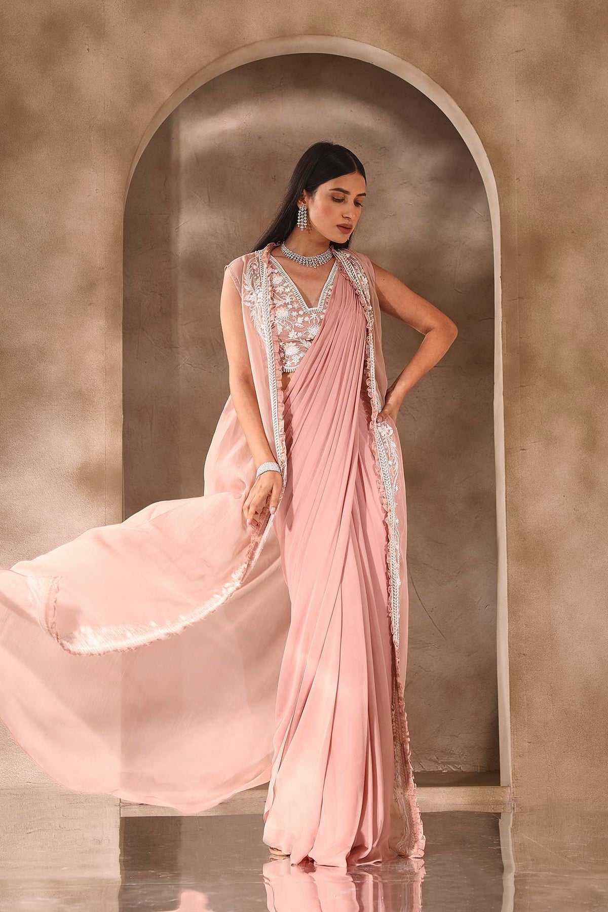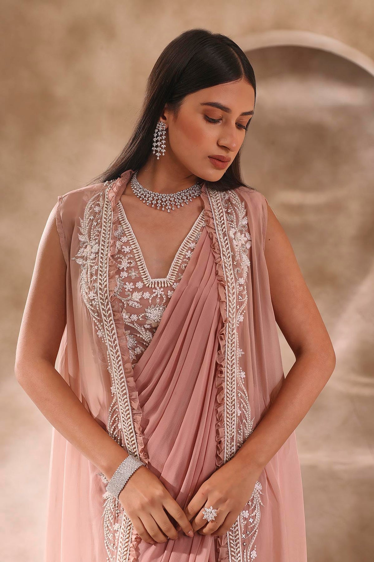 Embellished Choli Paired With A Pre Stitched Saree Embellished Jacket.