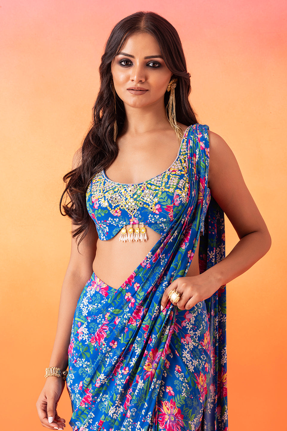 Embellished Printed Choli Paired With A Pre-Stitched Printed Saree