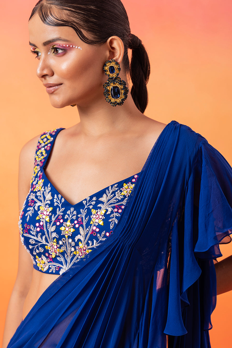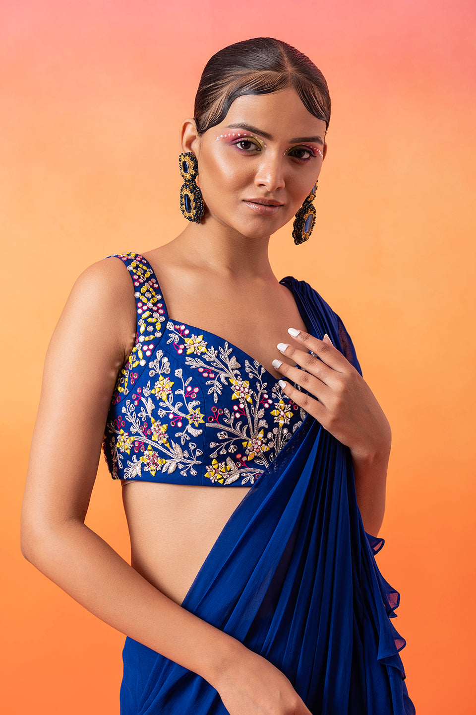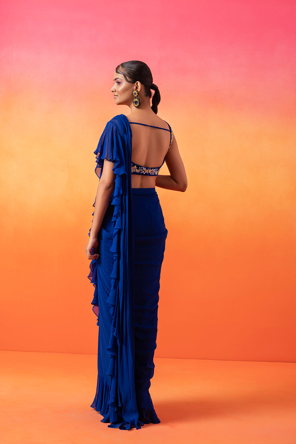 Embellished Choli Paired With A Pre-Stitched Ruffle Saree