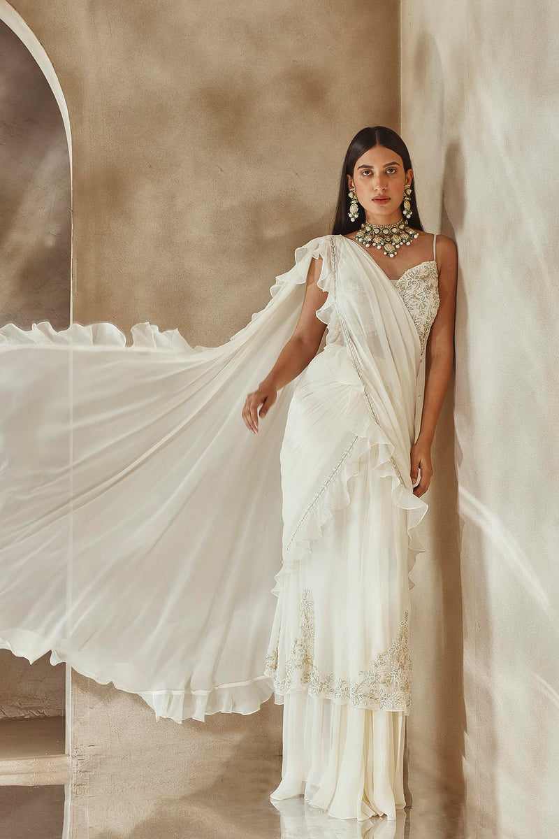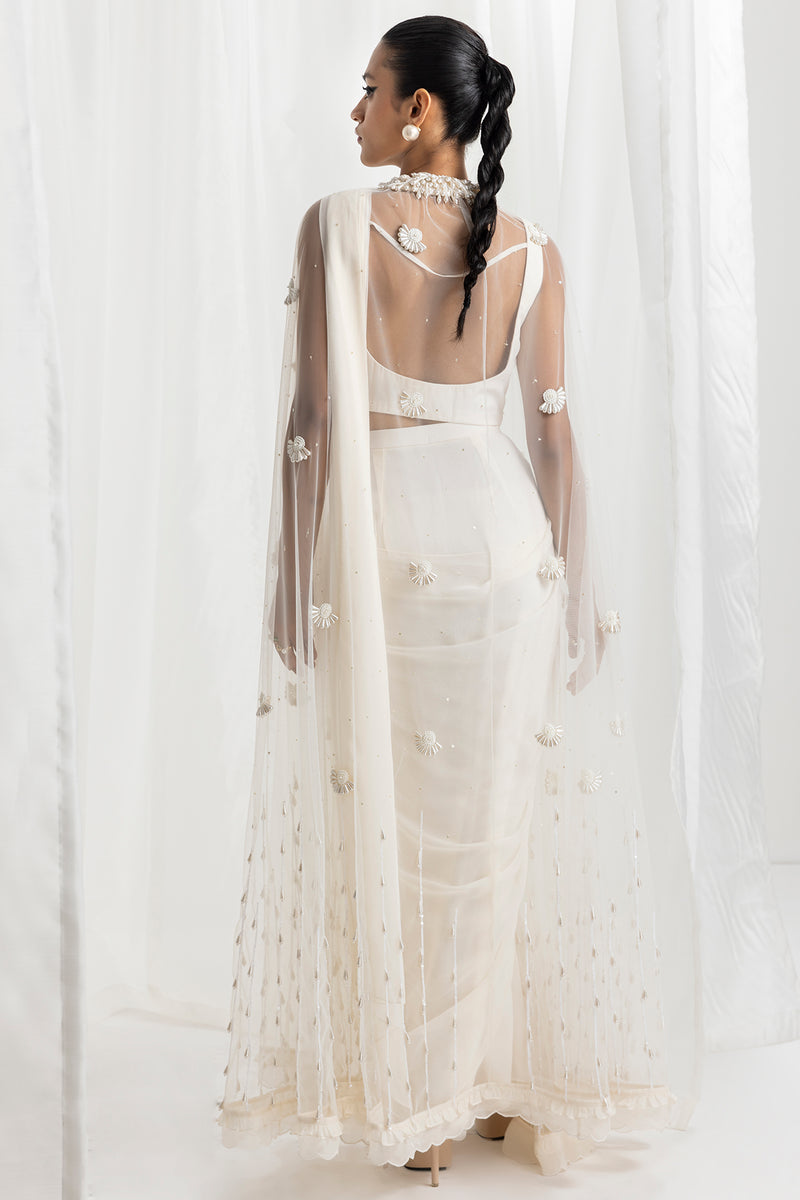 Ivory Embellished Saree Set