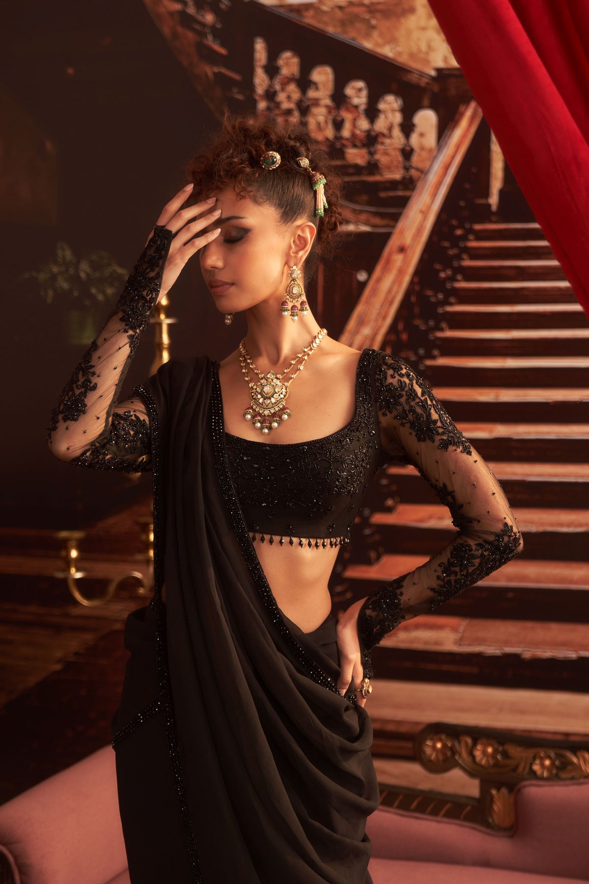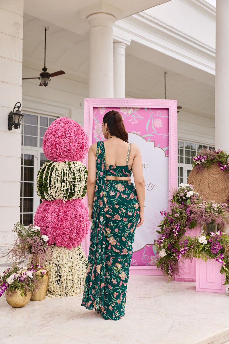 Embellished choli and saree with petticoat